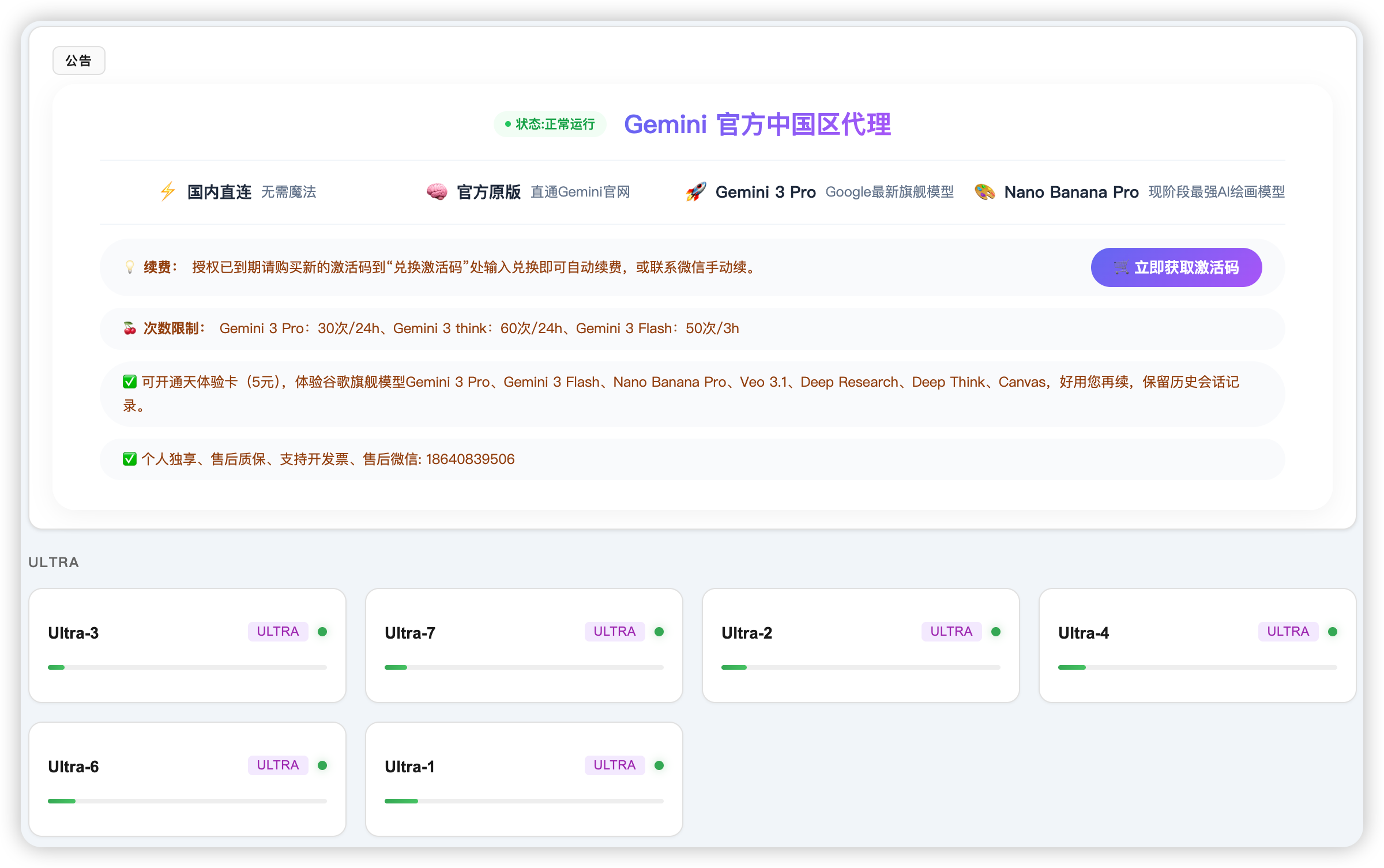 Gemini镜像站,后台是200美金一个月的Ultra会员和20美金一个月的Pro会员,功能与Gemini官网完全一致。